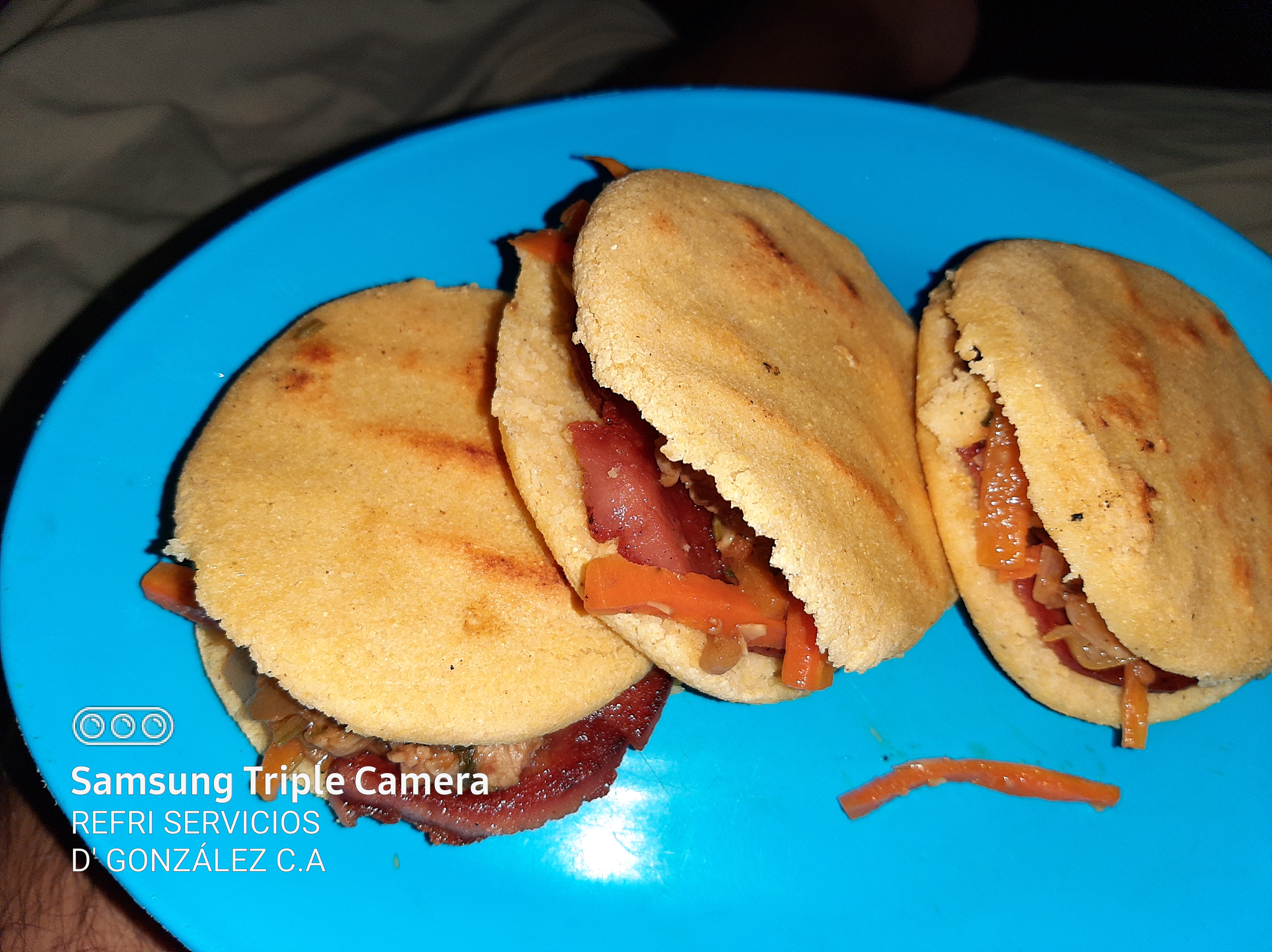 Luego dormi un buen rato, pues mi trabajo es fuerte en ocaciones y agota ... al despertar mi bella esposa me habia hecho la cena. Unas ricas arepas de carne con vegetales que quedo del almuerzo. Siempre suelo ser yo quien haga la cena pero hoy quiso consentieme ella a mi. 😍