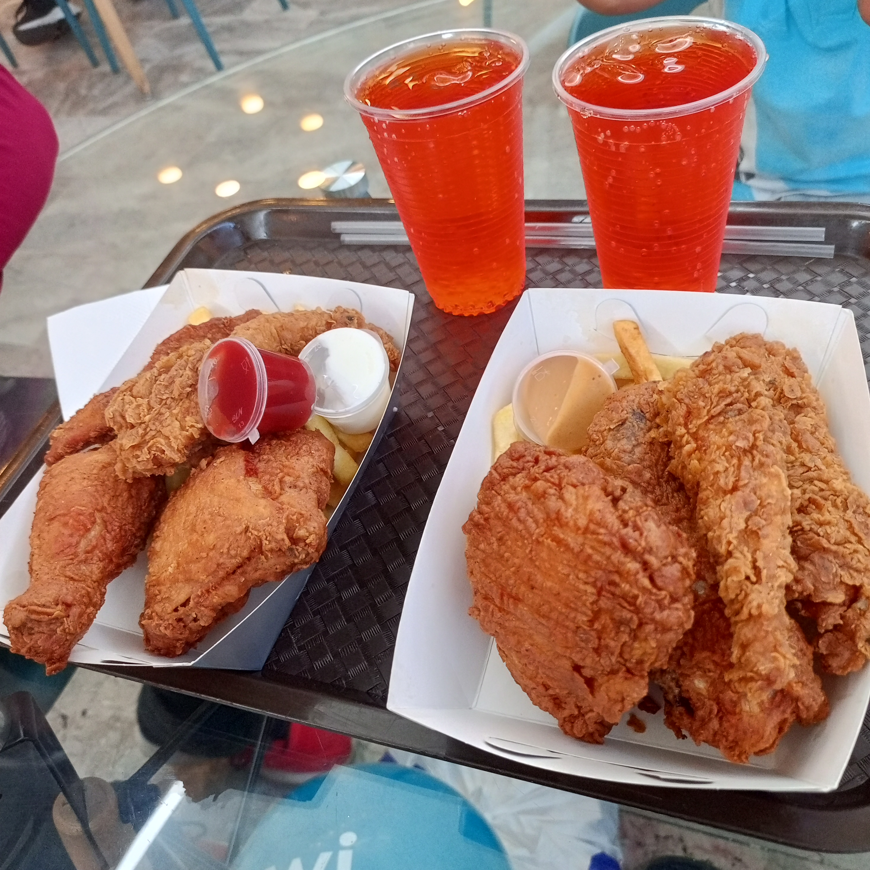 Cómo yo estaba con mi familia haciendo compras navideñas, decidimos hacer una parada y disfrutar de un combo que nos salió en 12$ (164 Steem) y la verdad es que no esperamos por mucho tiempo, tan solo 20 minutos , el pollo estaba súper crocante por fuera y jugoso por dentro, además de tener un sabor bien marcado, tenía mucho tiempo que no probaba un pollo así de delicioso.