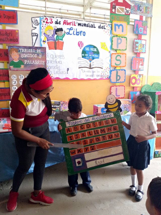 Nos incorporamos a la feria del libro y del Idioma donde debíamos mostrar un libro elaborado por espacio de aprendizaje, nosotros hicimos uno de adivinanzas, los niños y niñas dijeron las partes del libro y luego dieron respuestas a varias adivinanzas, para realizar más dinámica.