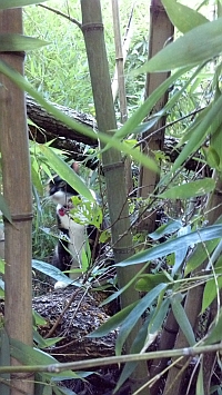 My cat hiding up in the bamboo branches the first time she was let out into the yard.