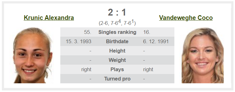 Vandeweghe Coco - Krunic Alexandra (16/06/18)