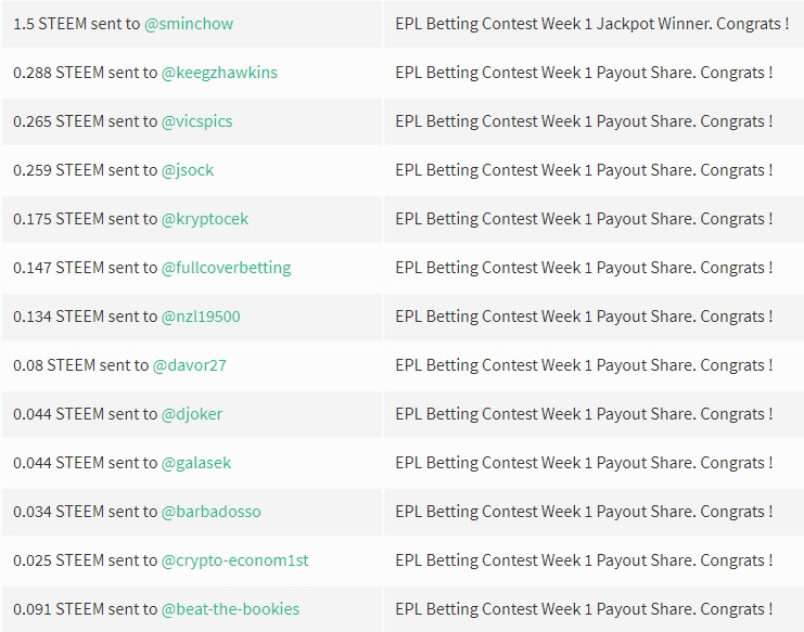 Week 1 winners have been paid out !