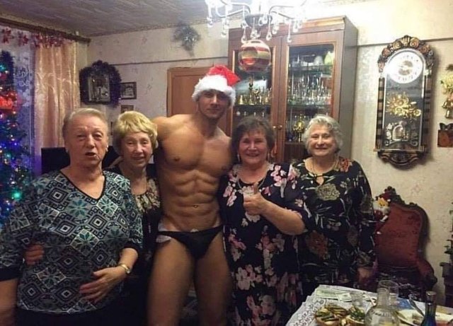 😘His body is made of pure plastic. But once a year on Christmas Eve He comes to life!! And loves to Strip Tease for the Girls, Woot Woot, What a Bod!!