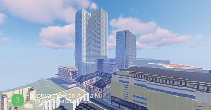 Hauptwache is located in the central city of Frankfurt, Germany. The German word translates to "main guardroom" literally in English and accommodates one of the most famous plazas in the city. This Build was constructed by the creative hands of Mr Würstchen Ganjaguy and Ehrenlachs. And I really think they did an amazing job. The build exhibits the formal guardroom with a cafe as well as the Hauptwache building, which is displayed in Minecraft, showing a stunning replica of the real buildings.