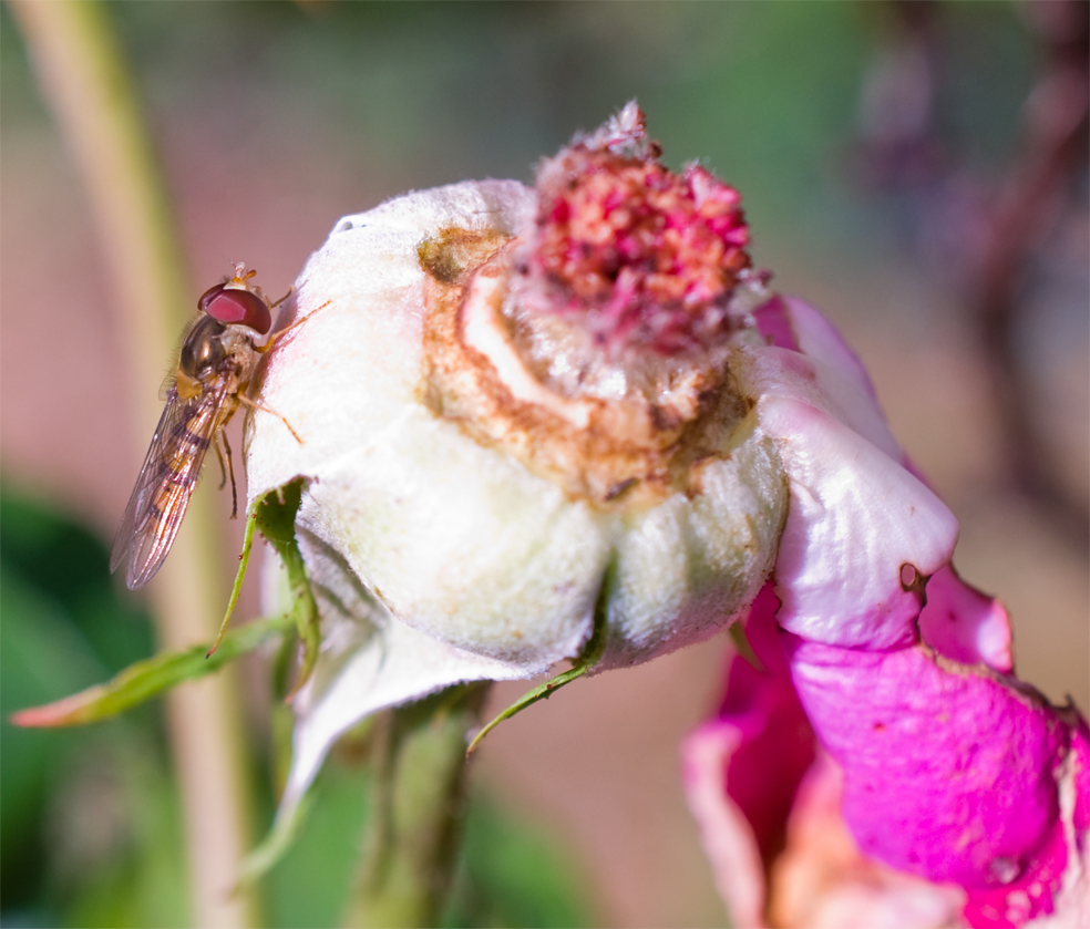 A fruit fly on a red rose which has lost most of its petals. Just a photo I liked which kinda went with the haiku...but of course it's to be interpreted as the reader/viewer sees fit. Photo taken by me in case you are wondering :)