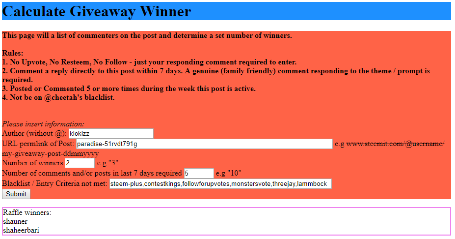 Winners will be chosen randomly after post payout. If you would prefer a certain prize, please specify in your response, otherwise I'll decide for you :)