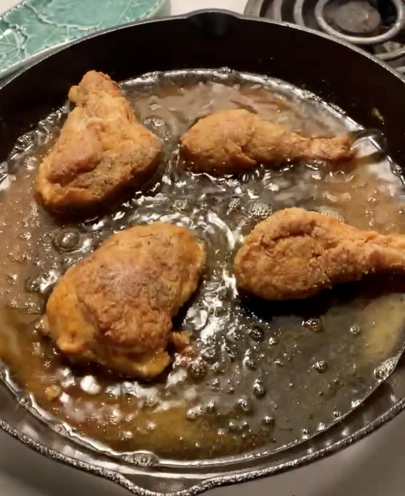 Peanut Oil- smoke point 450*F- perfect for lengthy deep frying, and a personal favorite of many chefs when cooking fried chicken via stovetop