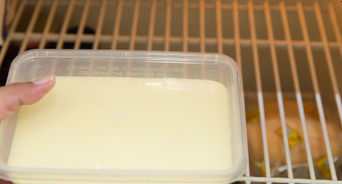 Llevamos a fuego medio hasta que se derrita la mantequilla, pero la leche no debe hervir. También puedes llevarla al microondas durante 3 minutos cuidando igualmente de que la leche no hierva.