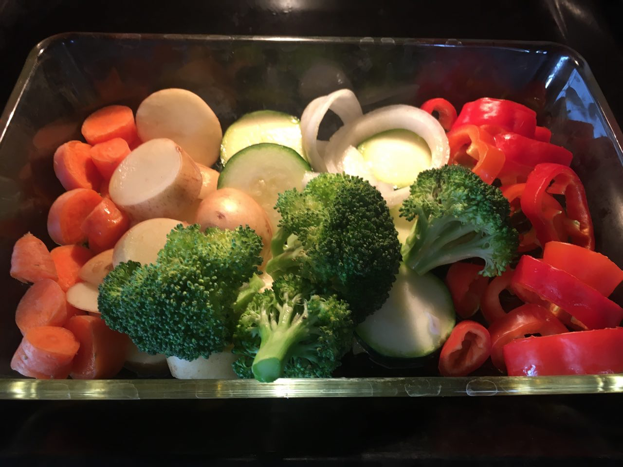 The vegetables ready for roasting