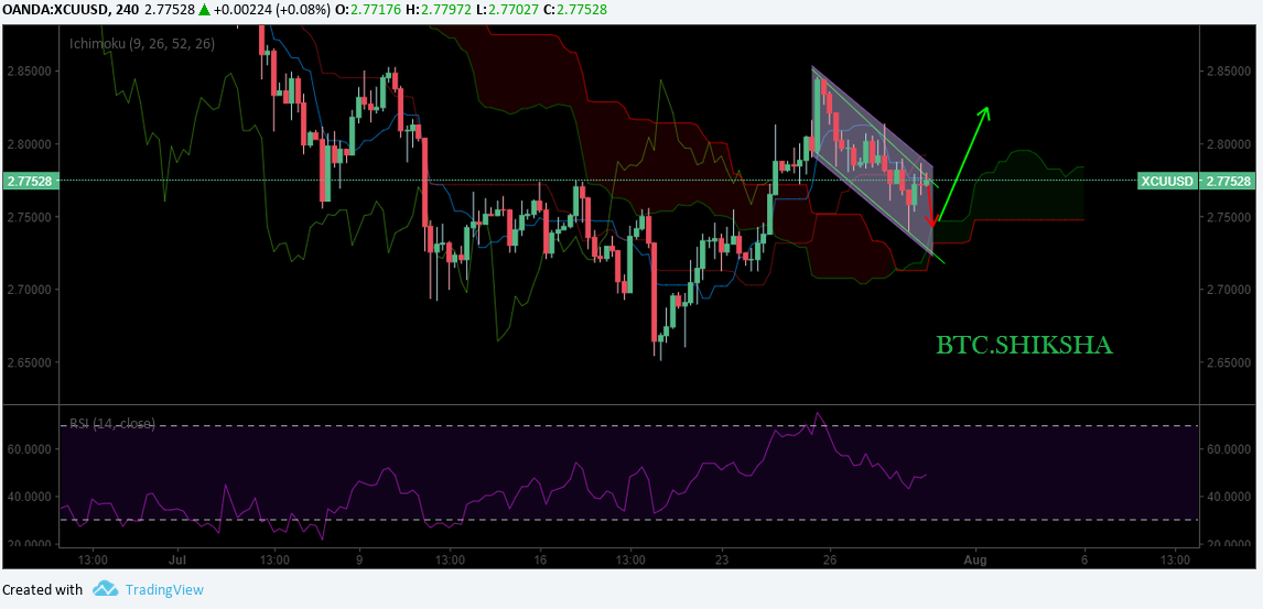 Trade advisory for Copper XCUUSDbtcshiksha (26)in #copper • 8 years ago Copper is giving great opportunity to short it and then one it test the support at cloud it can be longed accordingly. This is not a trade advice. Please do your own research before investing. #xcu #metals #commodities #trading