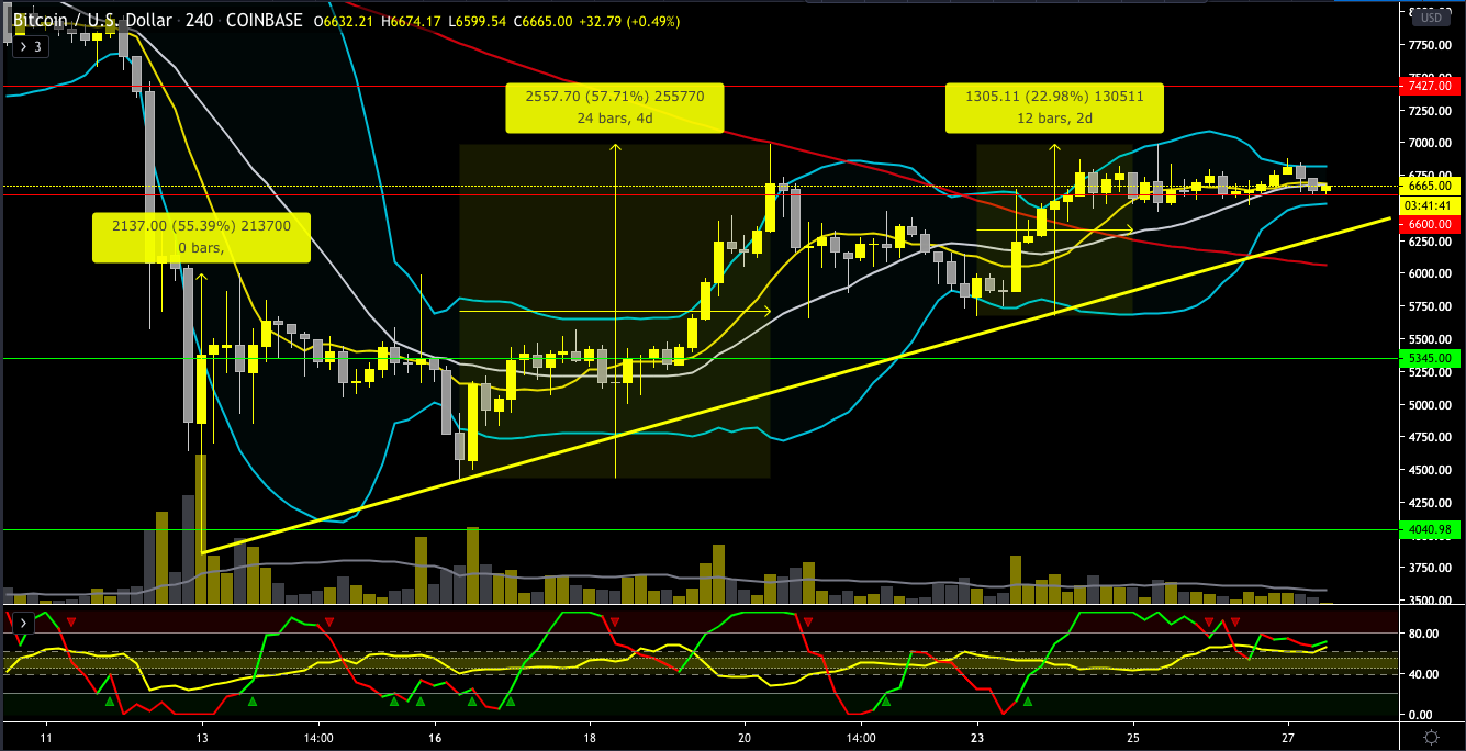 Bitcoin has been performing pretty well considering the circumstances - have a look at the 4H Corona trend below. Three great trading opportunities presented itself within the established range.