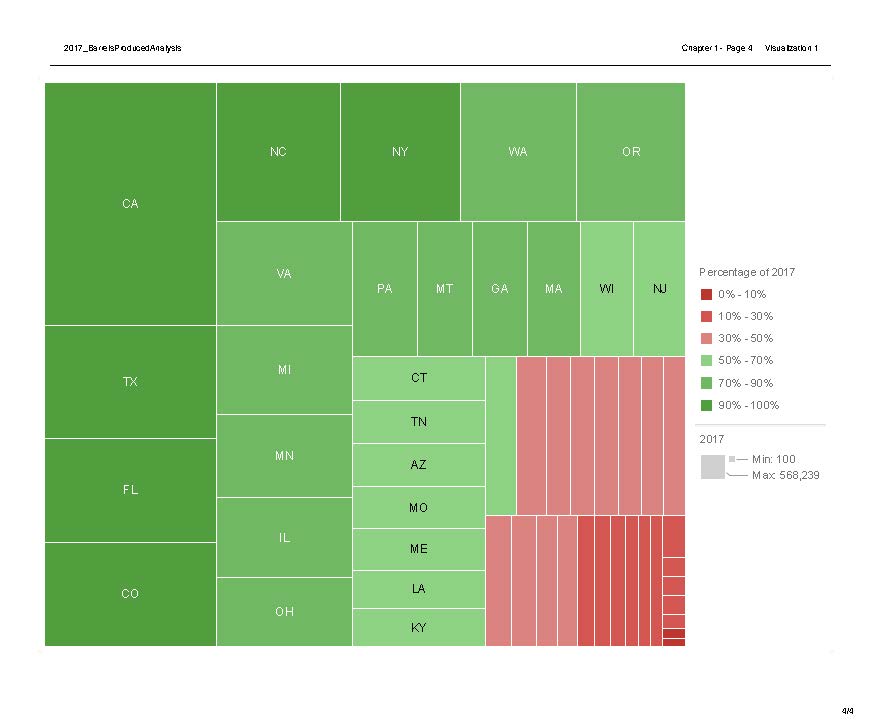 - Standard deviation of barrels produced in 2017 is 7,750 which is within the 20-40% range meaning that the range is comparatively narrow meaning we have a lot of smaller breweries (the happy bearded local brewer)