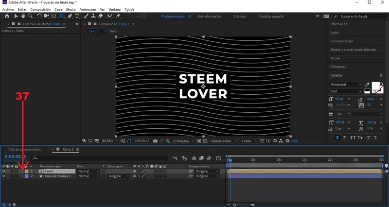 Desplegamos los valores de Texto (sombras) 1/Máscara/Máscara 1