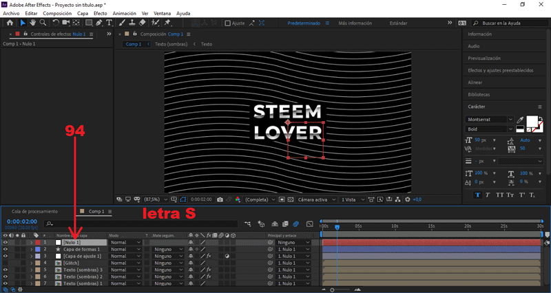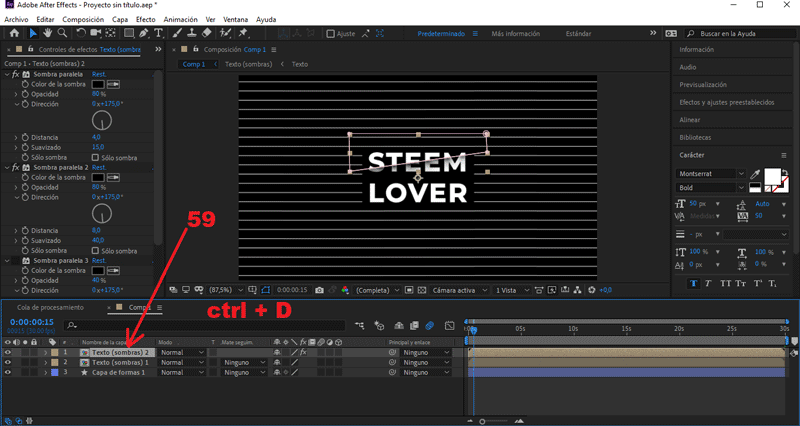 Teniendo seleccionado Texto (sombras) 2, presionamos ctrl + D