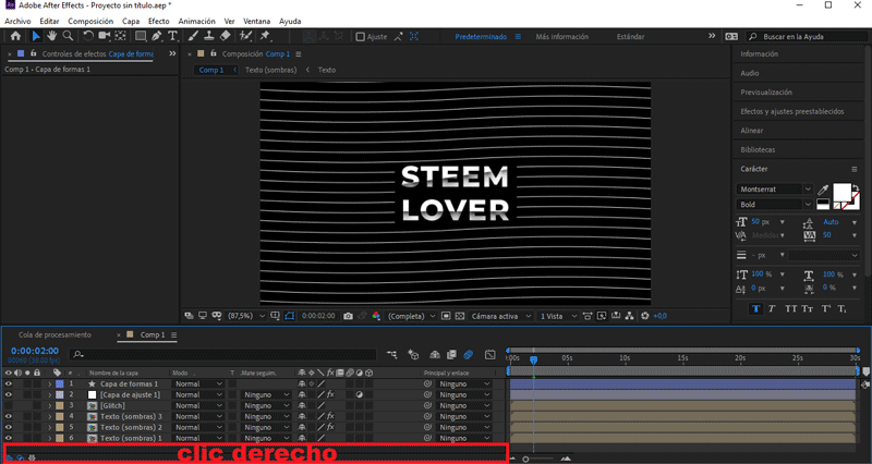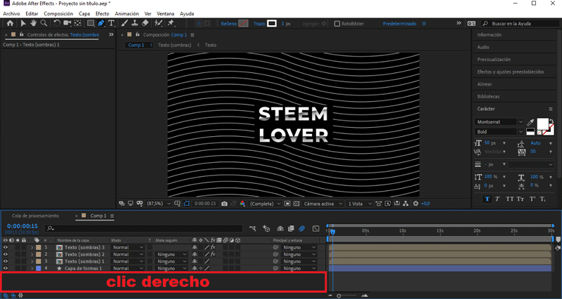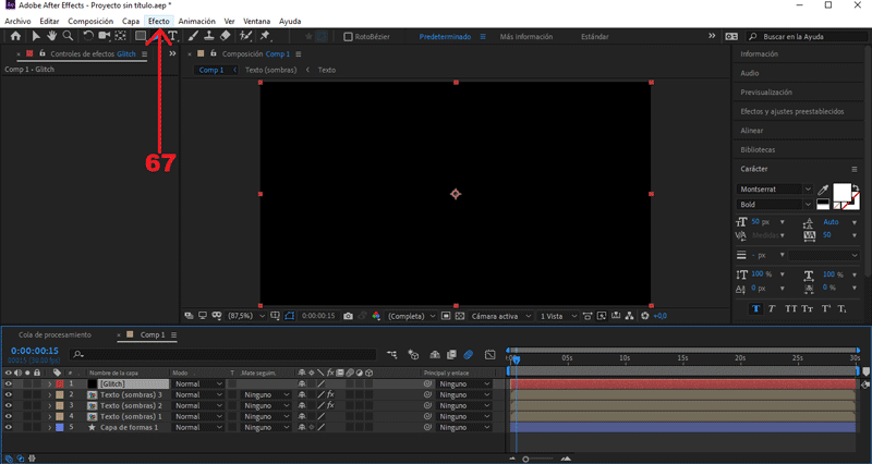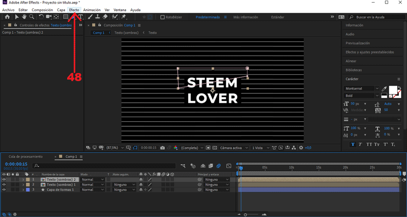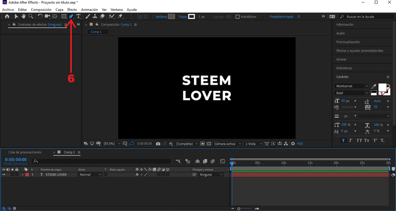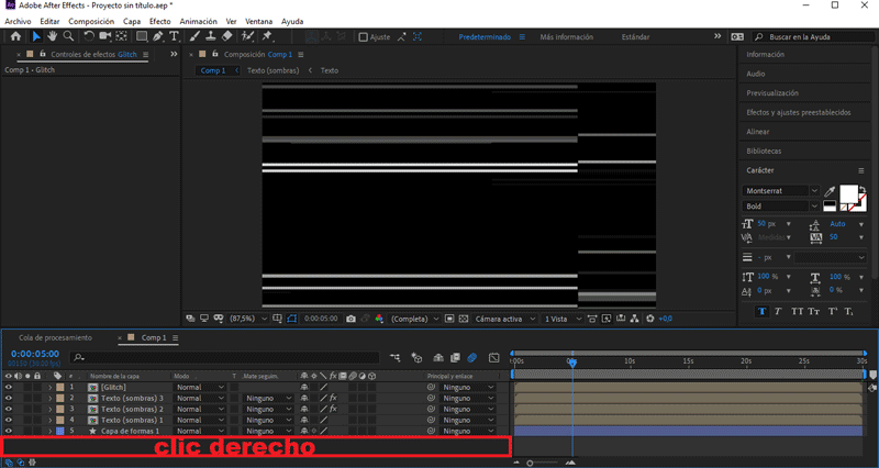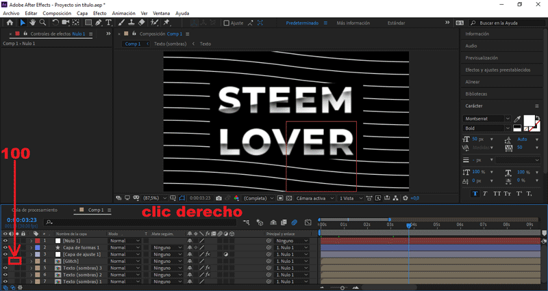 Vamos hasta la opción Efecto/Precomponer y le damos aceptar.