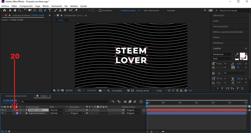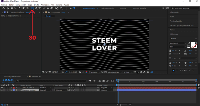 Posicionamos capa de forma 1 debajo del texto, en la línea de tiempo.