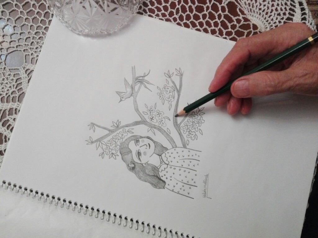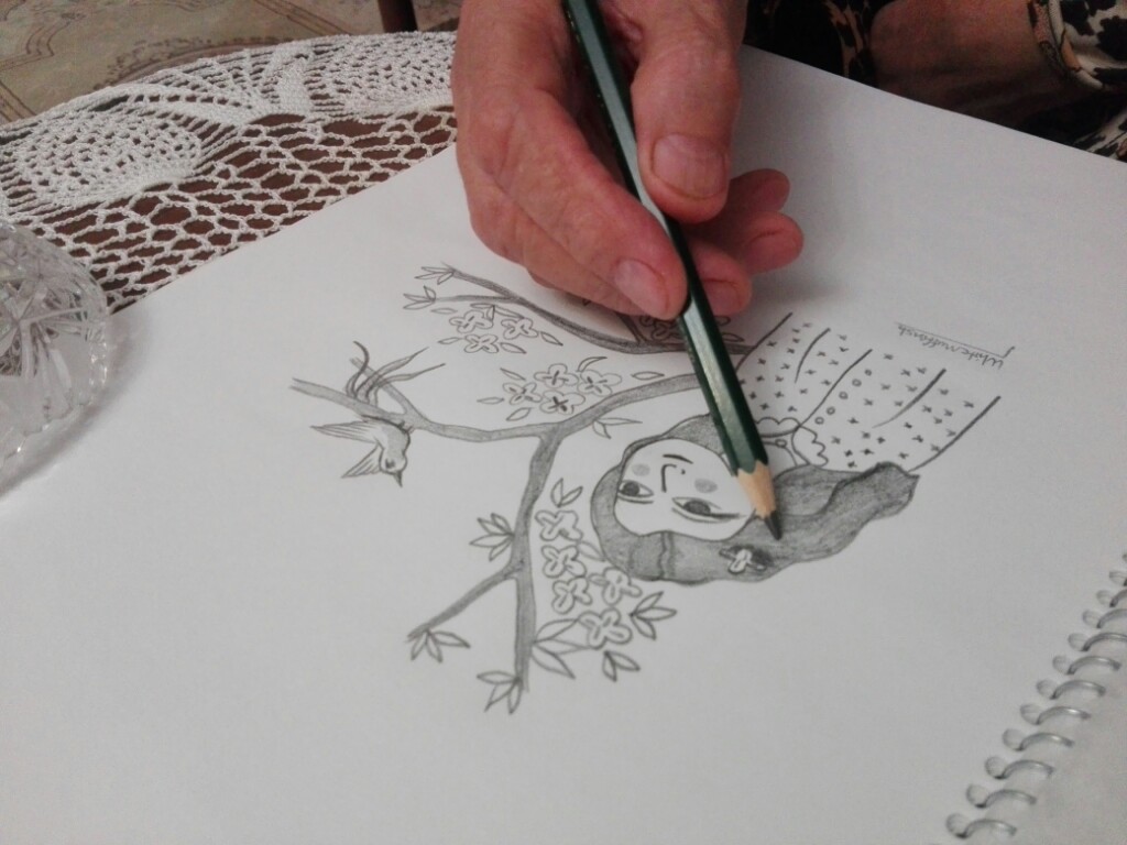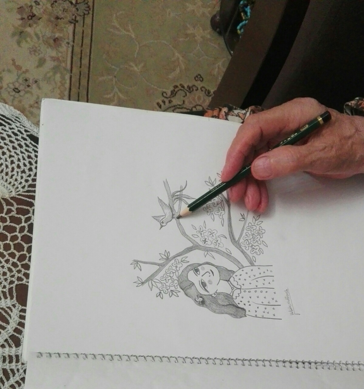drawing my daughter and bird