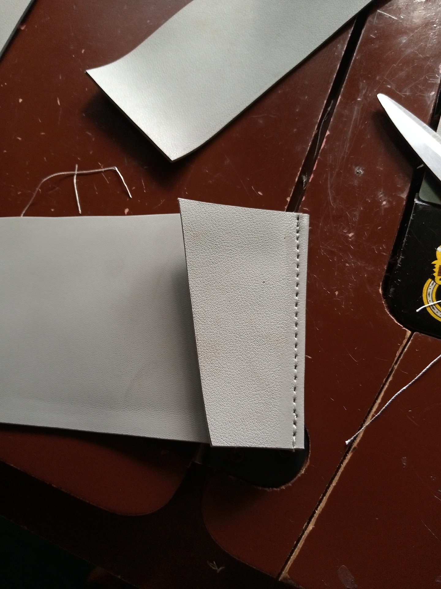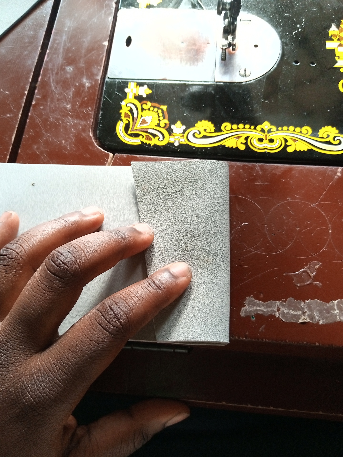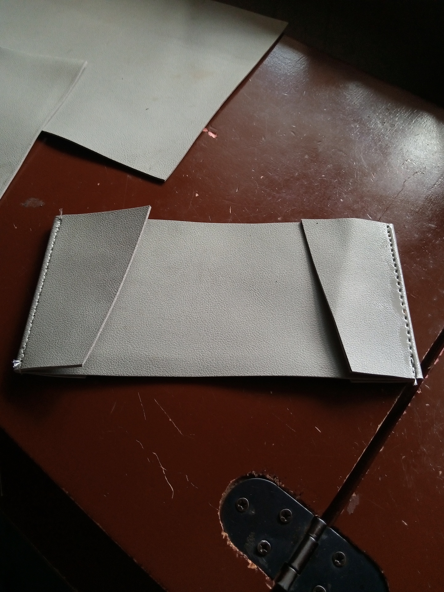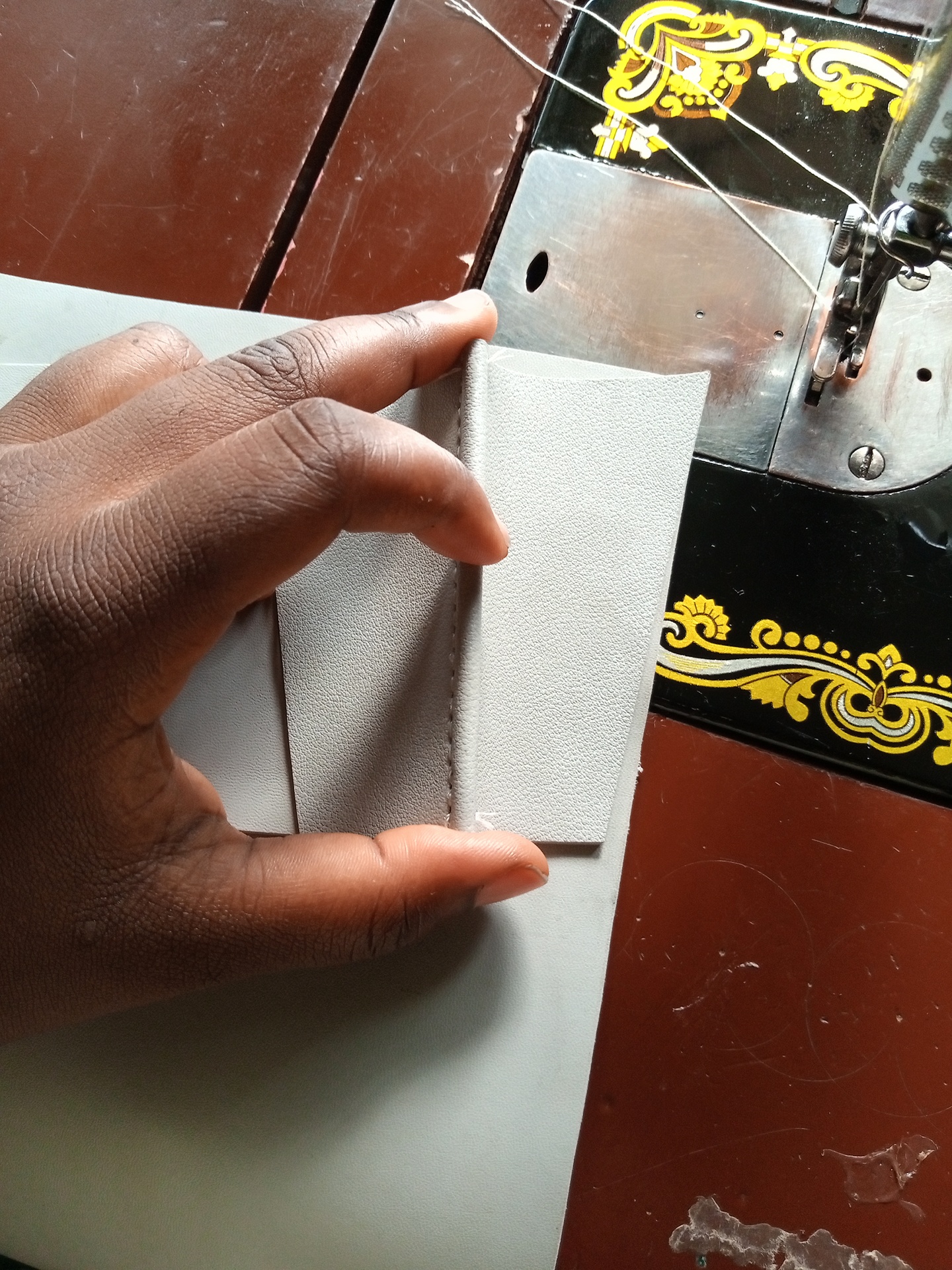 - I stitched the 8 by 3 inches leather to the covering side of the purse as seen below.