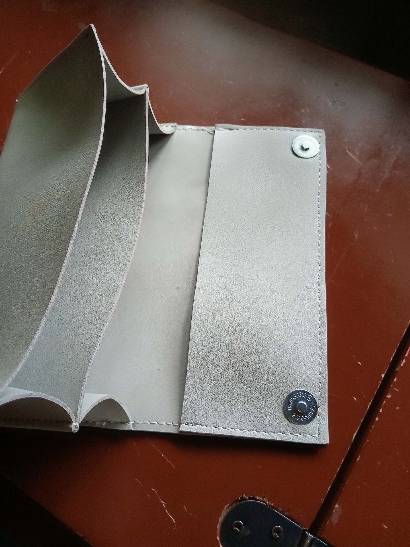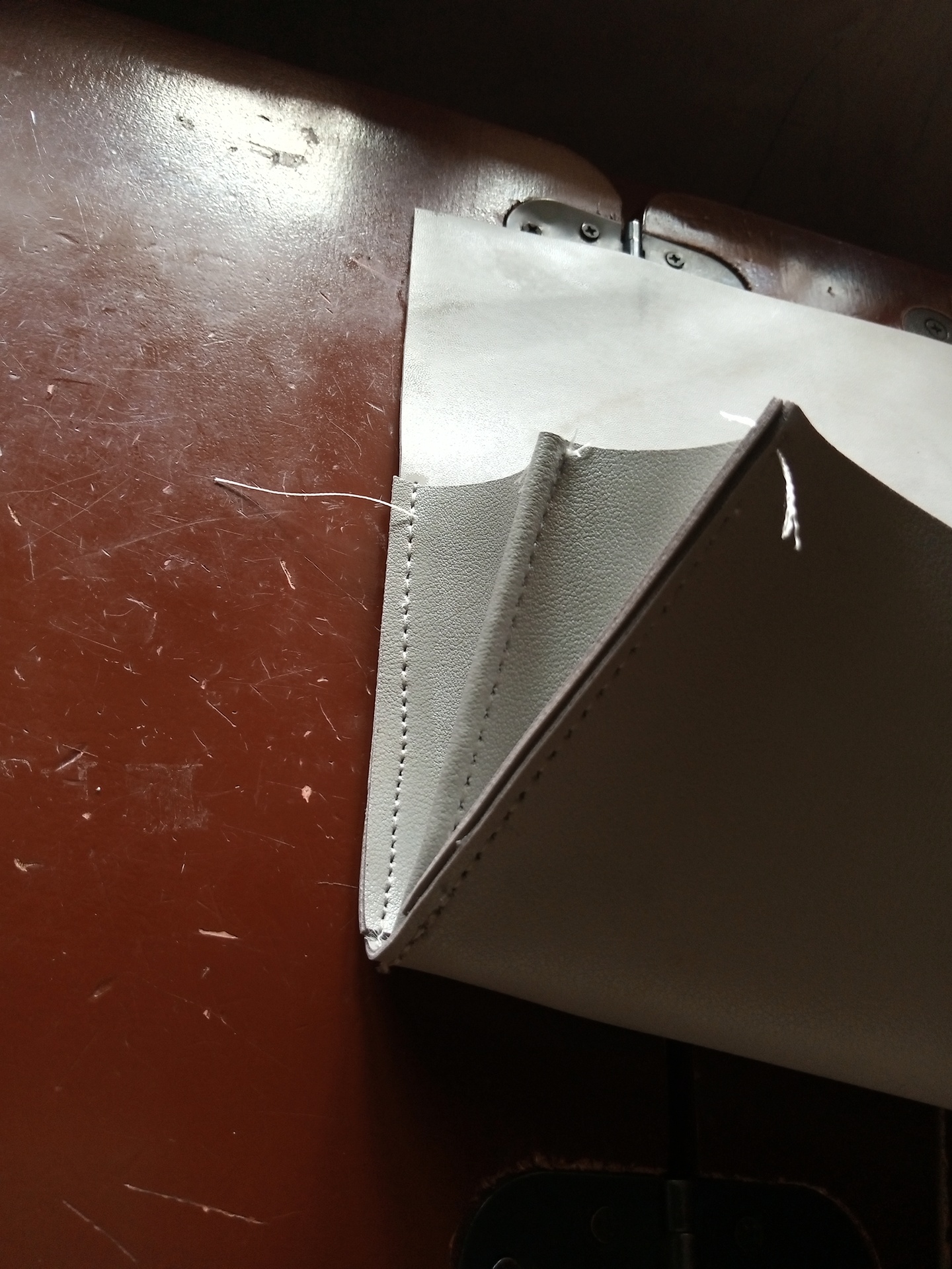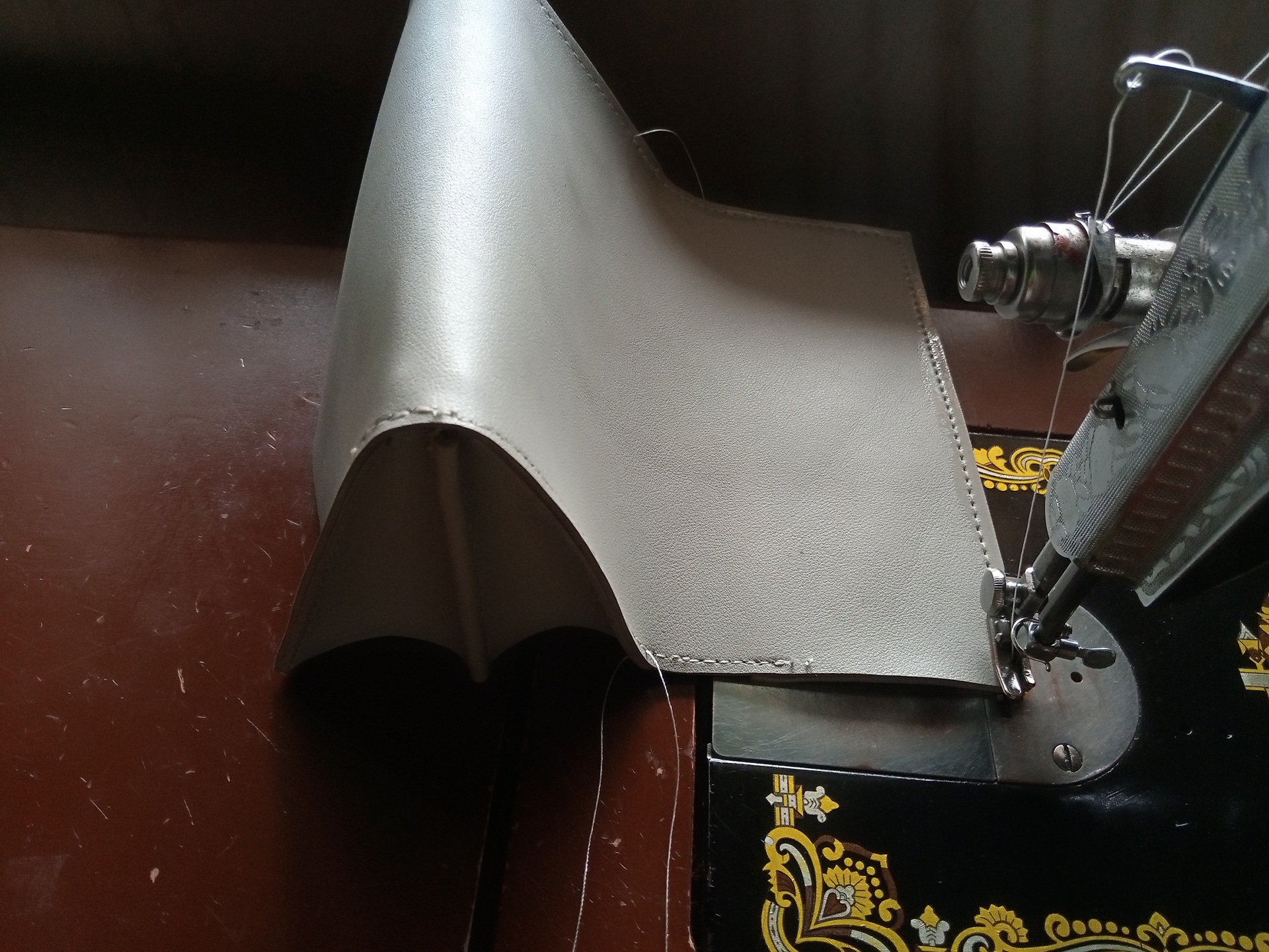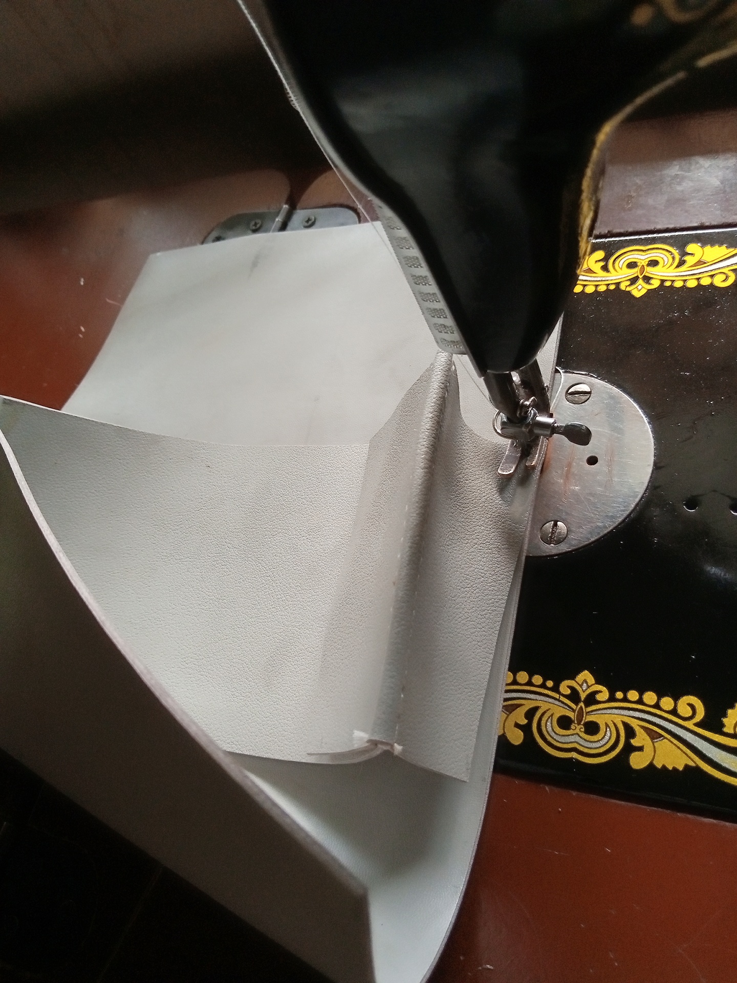 - I stitched the 8 by 3 inches leather to the covering side of the purse as seen below.