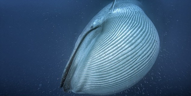 According to Jeremy Goldbogen of Stanford University (USA), in addition to the size of the crisis, green whale daily consumption of 40 million molluscs per day. Big mouths whenever possible open up large amounts of small organisms into it.
