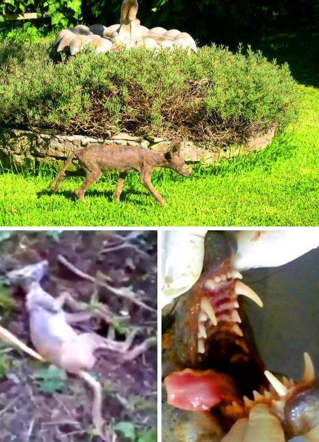 Chupacabra is considered a type of vampire that specializes in blood sucking goats, sheep, small animals. According to experts, this can be a predator. After DNA testing, they found that this was a cross between a gray wolf and a coyote. And this individual is sick so they just lost their fur.