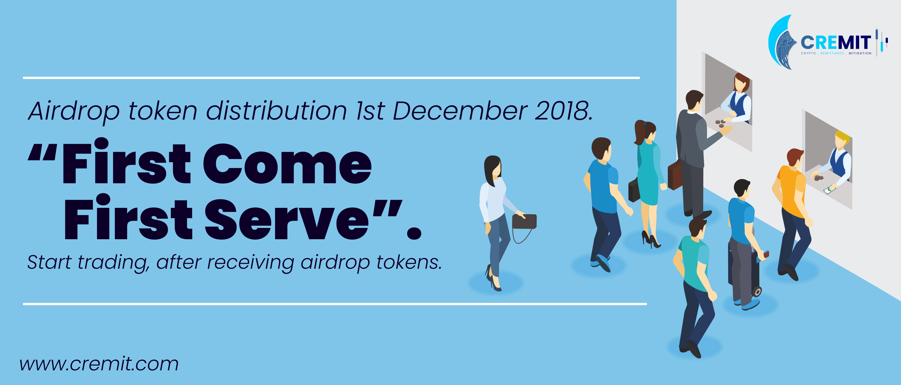 This is a great opportunity for everyone to invest in CREMIT. You can buy CRMT tokens at an unbelievable price at $0.45 before the TIPCO starts and get handsome returns after the launch of TIPCO (You can sell the tokens right after TIPCO or choose to wait for the CRMT price to increase!). The airdrop token distribution will take place after 1st December 2018 and that will be done in slots with first come first serve basis. The trading of received tokens can be done in the exchange.
