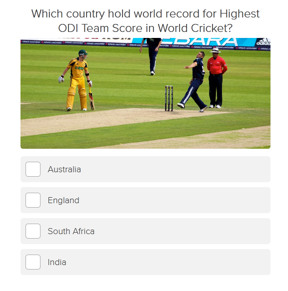 [QUIZ]your knowledge about crickethk89 (30)in #cricket • 6 years ago (edited)Let's check your knowledge about One day international cricket. Here are Answers 1.England 2.Zimbabwe 3.Rohit Sharma 4.De Villiers 5.M.Muralitharan 6.Lasith Malinga 7.Sachin Tendulkar 8.Chamind Vaas 9.Adam Gilchrist 10.Australia