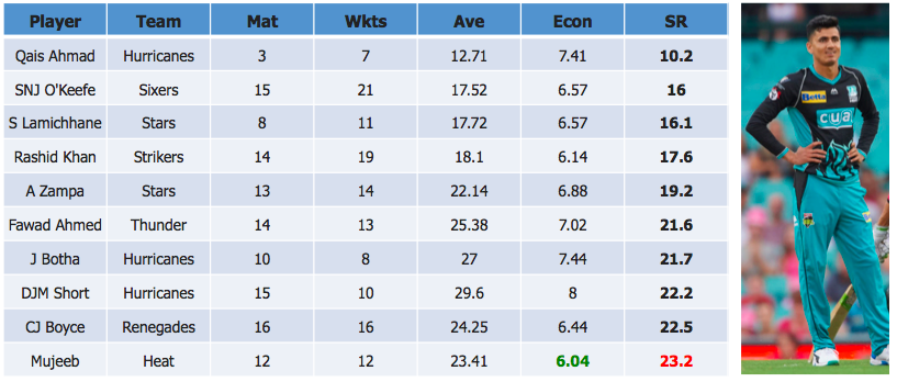 Mujeeb was very economical but every franchise other than the Scorchers had at least 1 spinner with a better strike-rate than him