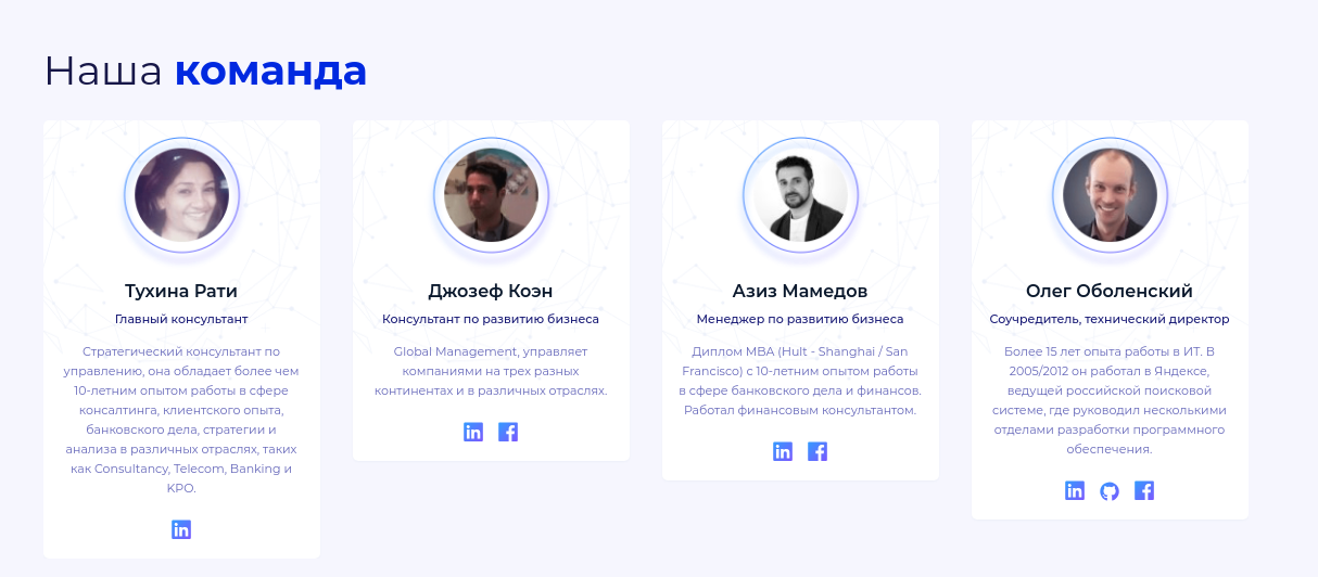 Над проектом работает достаточно сильная и нацеленная на результат команда, которая имеет большой опыт в данной сфере.