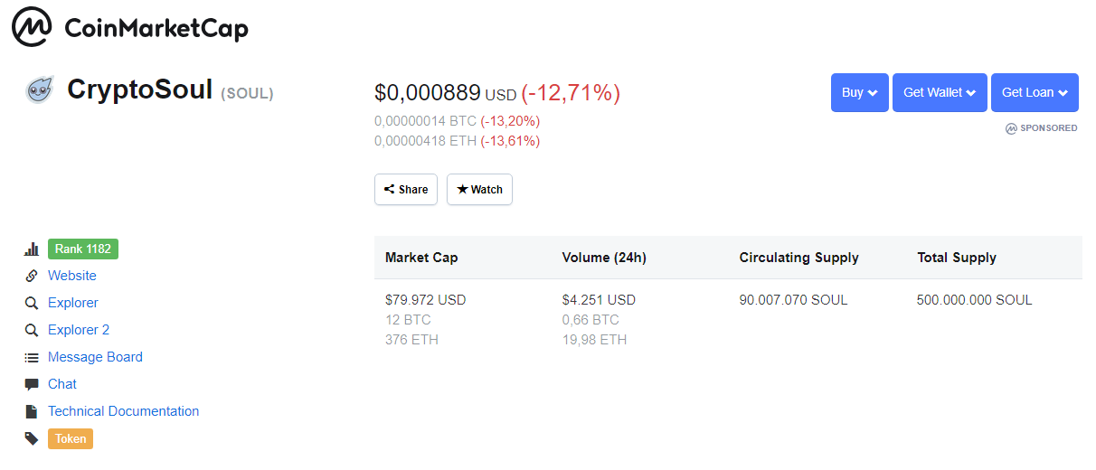 aqui su enlace: https://coinmarketcap.com/currencies/cryptosoul/