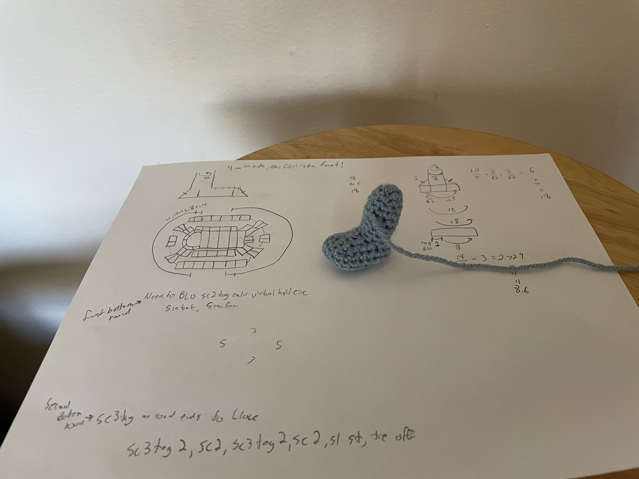 My next step is to try to get the head moved farther forward which will require figuring out a more complex shape for the neck/torso and how it connects to the head. Although at some point the changes I'm implementing her will be big enough that the experiment might be of questionable value from the perspective of adapting existing patterns. But even if that turns out to be a problem I'll still want a pattern I'm happy with that I'll be able to use as a starting point for my own character designs. I might also tweak the foot designs a bit to try to keep them flatter on the bottom, I think they're ending up with too much curvature on the bottom when I stuff the legs.