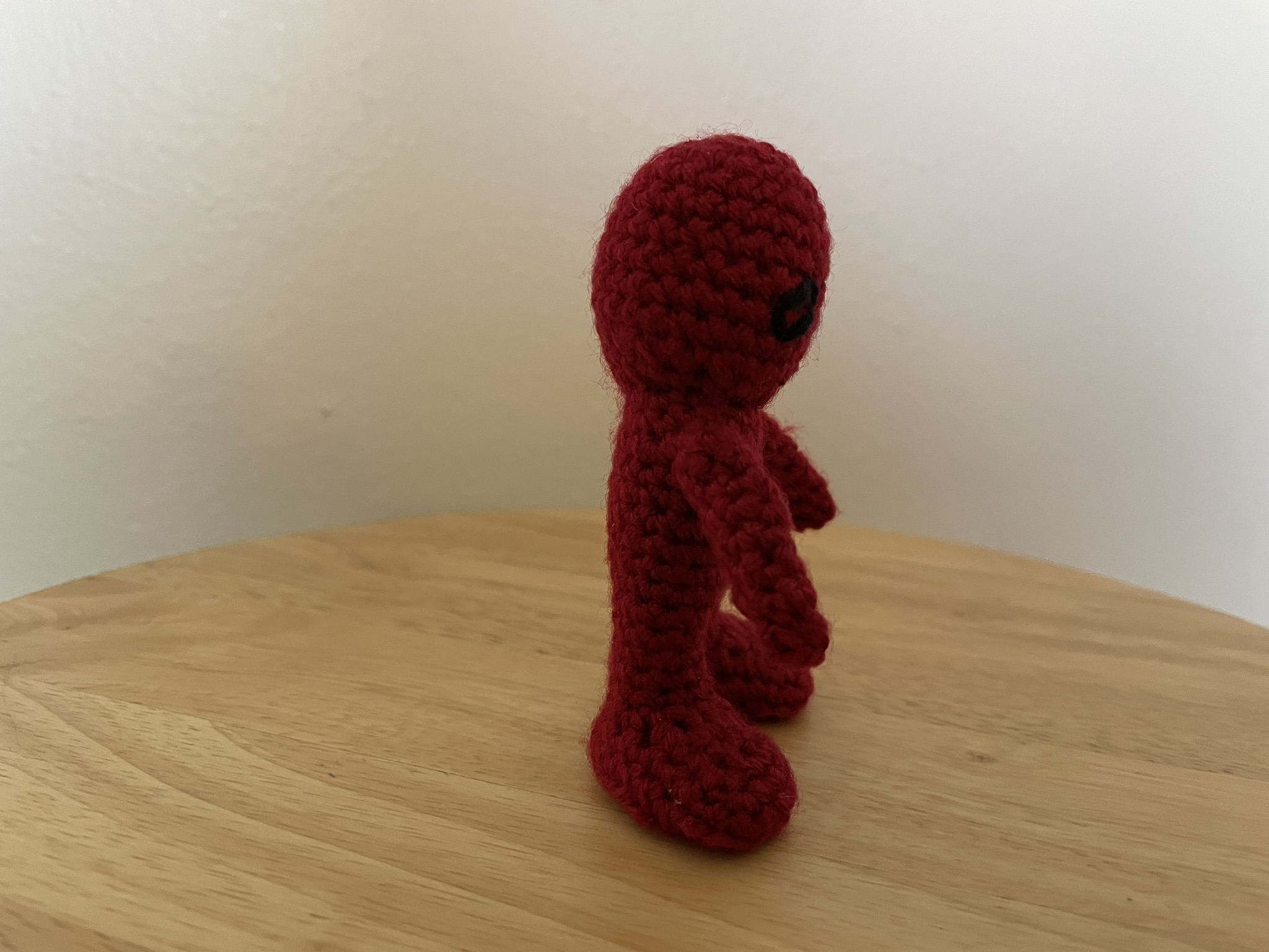 When I've made crocheted (or knitted figures they never stand properly. My response has normally been to add wire to create a sort of skeleton inside the figure and to just hide it in the stuffing.