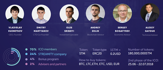 STM will be transferred to users' accounts after the second stage of the ICO. All unsold tokens will remain in reserve with STREAMITY's project founders