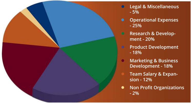 Прыбытак ад ICO будзе выкарыстоўвацца наступным чынам: