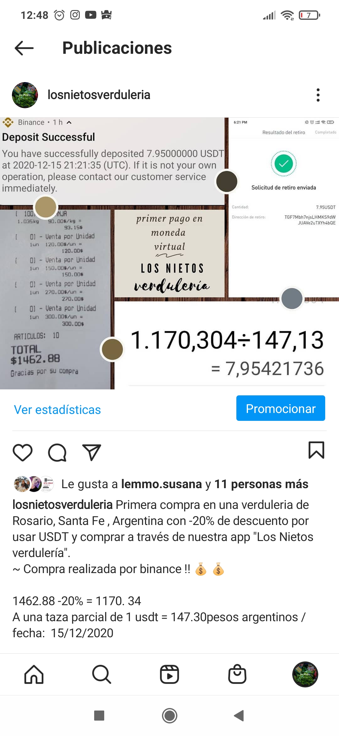 Primer pago con crypto en qrgentinaaleaii (34)in #crypto • 5 years ago @losnietosverduleria en Instagram #pagos #binance #usdt #theter #trx #steem #proximamente