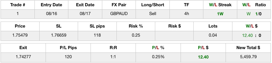 4hWR: Trade #1: GBPAUDbuddhaspalm8 (25)in #crypto • 8 years ago Reason for Trade: TTR Notes: On downtrend. Nice retrace and bounce off both MA’s. Trade Result Remarks: TP1 hit and ™ closed at 0.25%. #trading #journal #record #fx