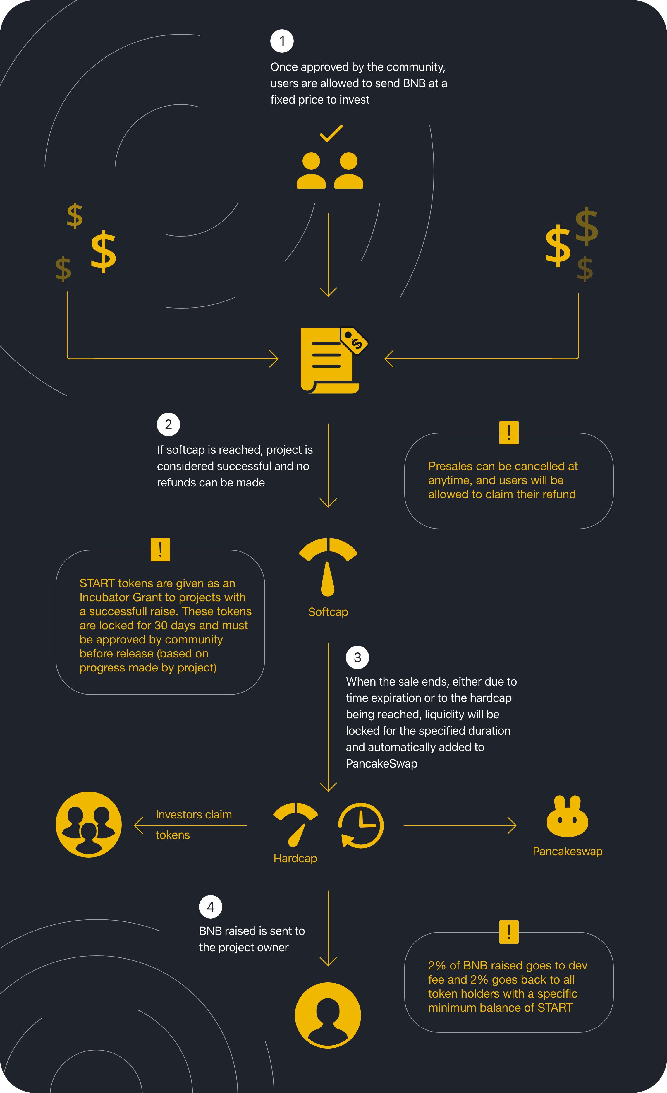 IDO PARTICIPATION: Hodlers staking at least 50 START tokens can participate in future IDOs on BSCstarter