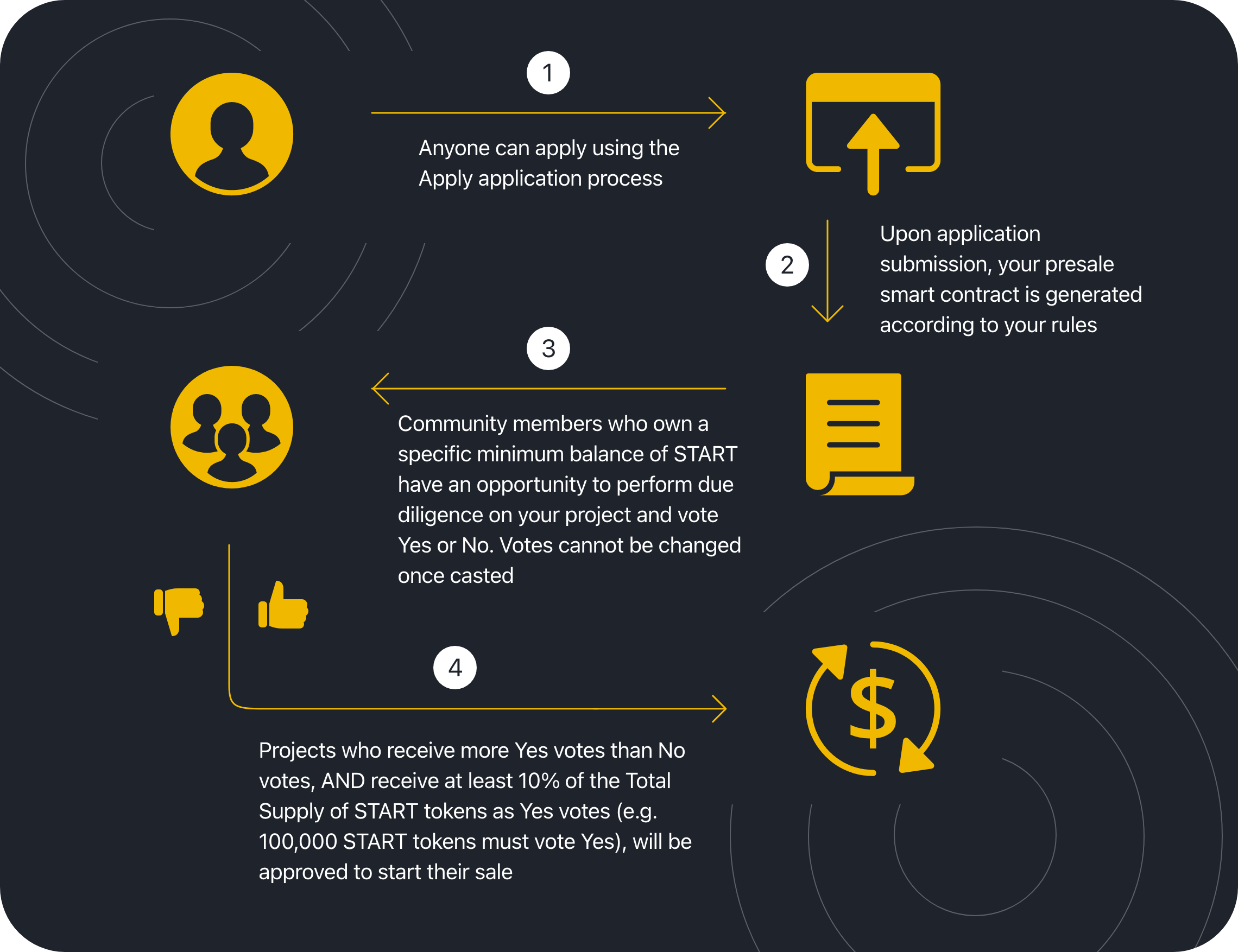 VOTING POWER: Hodlers staking at least 100 START tokens can vote to approve or deny projects on BSCstarter