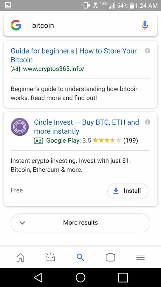 Pics are screenshots of crypto related ads that can now be found on Google: Coinbase, Circle, How to invest in Cryptos, Mining for crypto