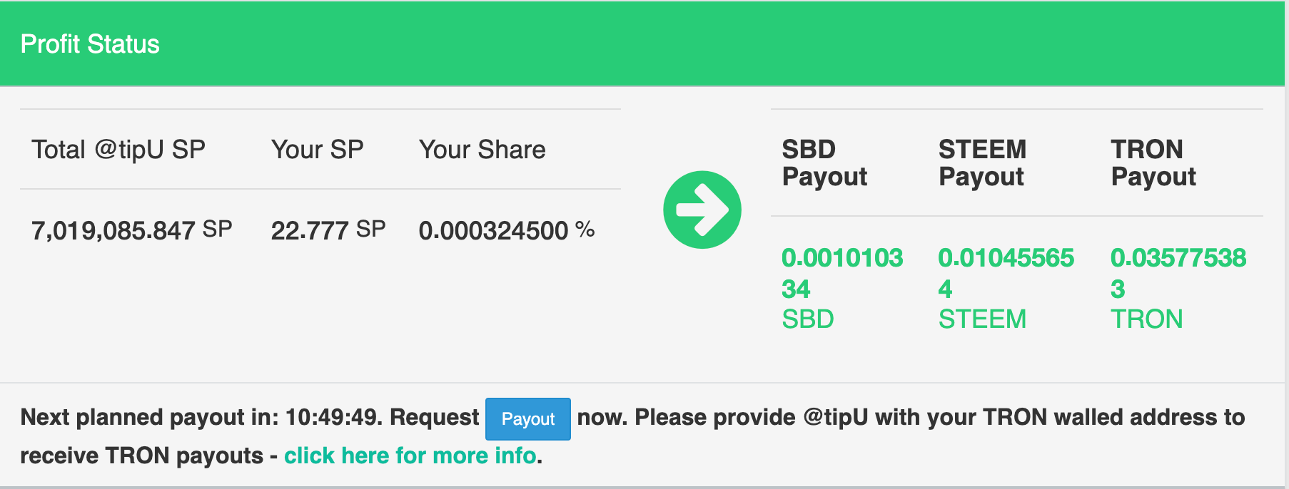 Here is the current Profit Status for today where you can see I am over the .001 threshold with over 10 hours to go before the payout.