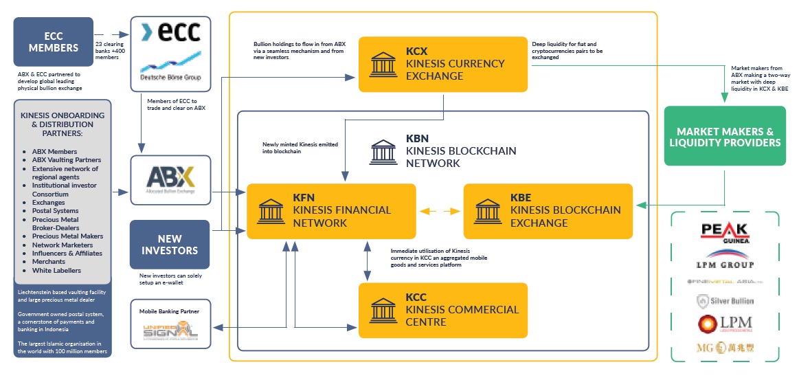Kinesis economic environment was not done alone, it was developed in partnership with the Allocated Bullion Exchange (ABX) which is a world leader in electronic exchange of allocated precious metals. Also, ABX has storage facilities around the world and partnered with the Deutsche Börse Group, which is one of the main companies exchanging shares and securities in the European financial markets. Thus, the physical asset is secured and guaranteed.