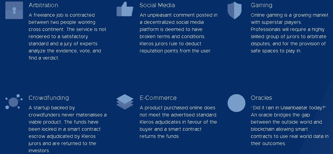 The possibilities of Kleros application are very broad, however, it has a clear practical use for cases of: