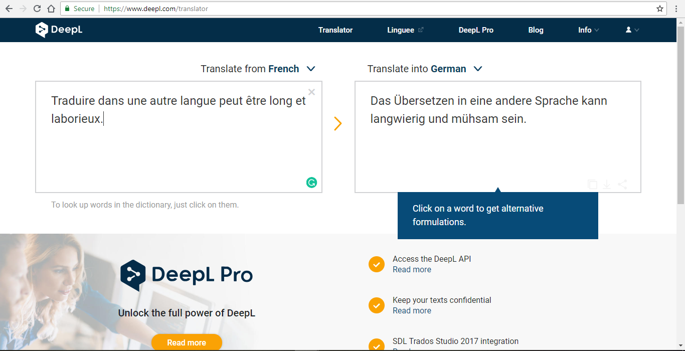 Try it yourself here: https://www.deepl.com/translator