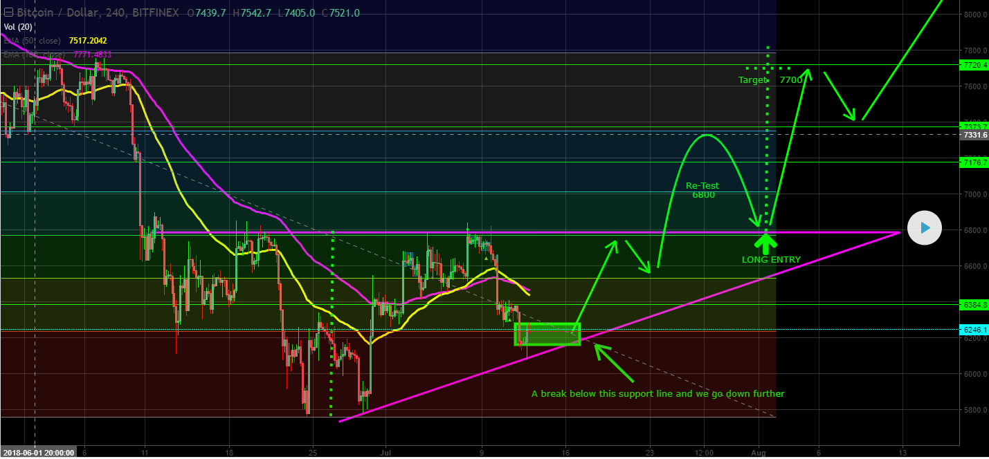 I will long once we break 6800 resistance and bounce off the retest with a target of 7700.