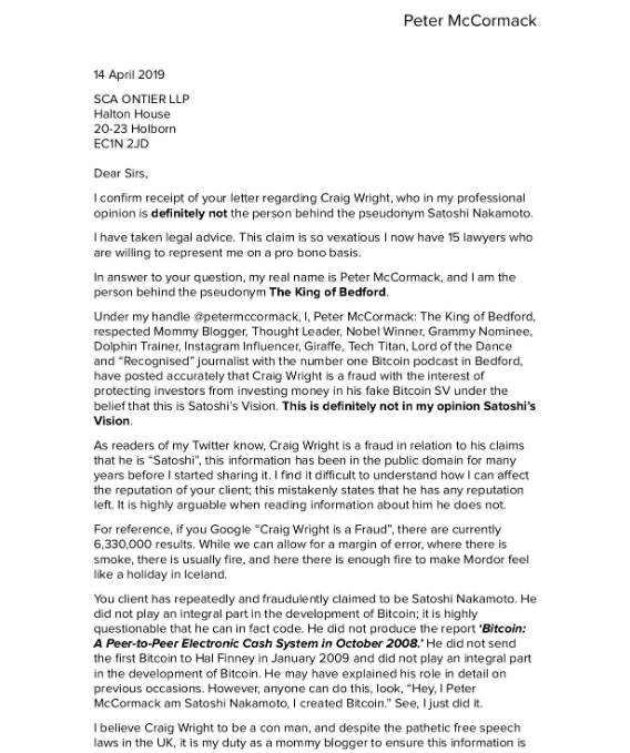 These Documents Are Peter McCormack’s Response.