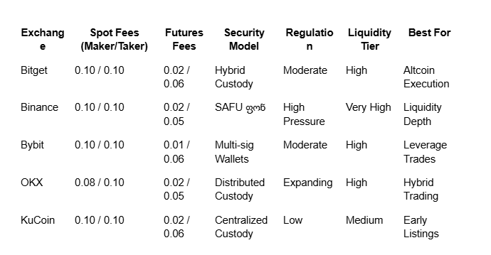 To navigate this space, traders are increasingly comparing Bitget, Binance, Bybit, OKX, and KuCoin. Each exchange plays a different role in the ecosystem. Some prioritize listing speed (getting new tokens early), while others focus on deep liquidity and derivatives infrastructure.