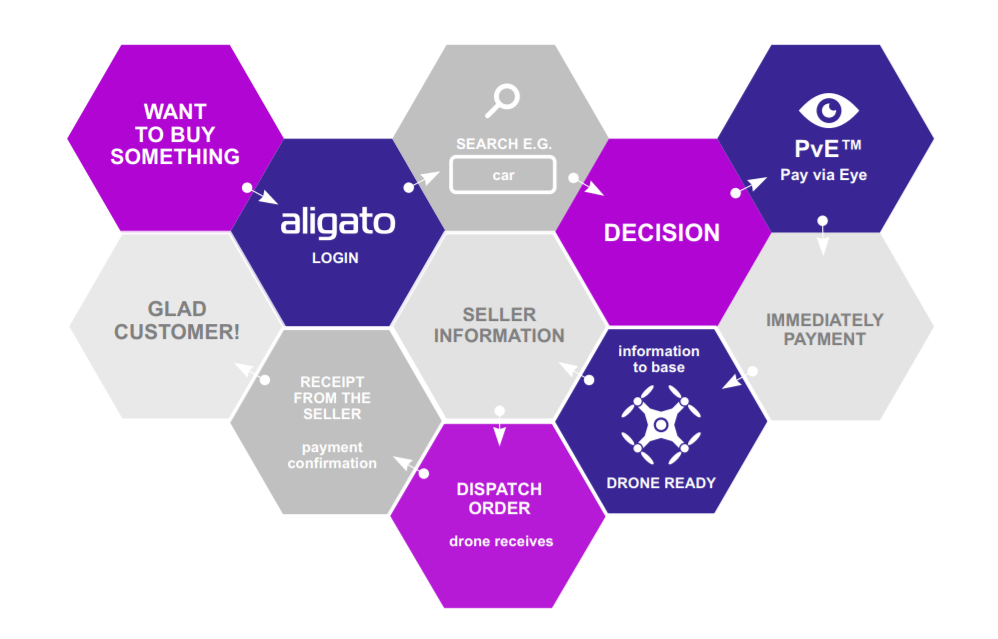 Simply put, if you want to buy something, you first need to login to the Aligato platform and make a search. After finding what you’re looking for, you activate the Pay via Eye system to complete your payment. Once done, the information will be sent to base to get the drone ready for delivery, and then the seller will be informed about it, as well, and will then dispatch the order, via drone service, to the happy customer.