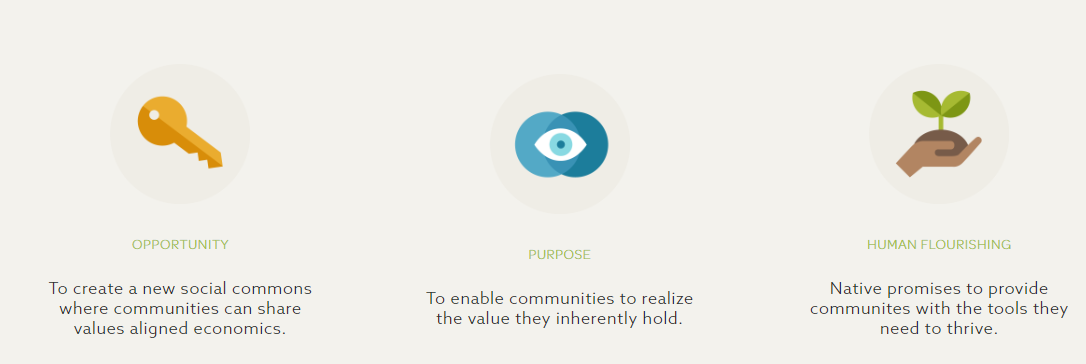 The fundamental concept associated with the ecosystem designed by Native is community. In order to understand the scope of this project it is necessary to clarify the idea on which the whole platform is built. With this intention in mind we resort to a formal definition of community to illustrate Native's fundamental goals: