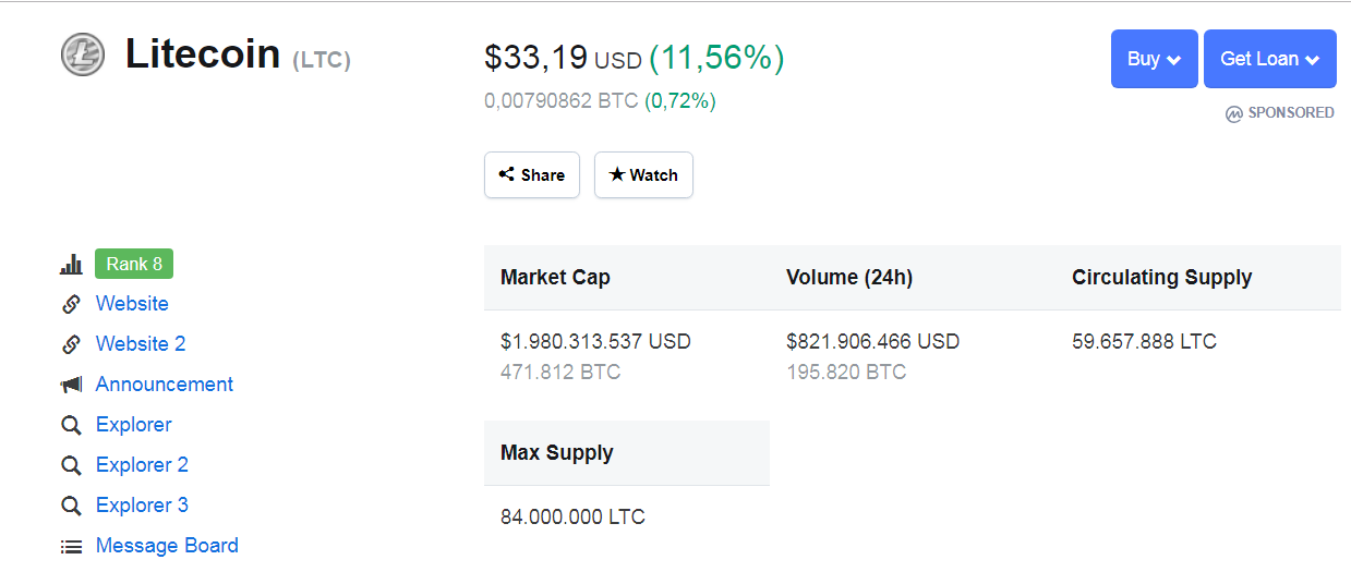 Litecoin (LTC)lallalalalalalal (45)in #crypto • 7 years ago Litecoin (LTC)=$33,19 USD (11,56%) =0,00790862 BTC (0,72%) #ltc #kryptonia