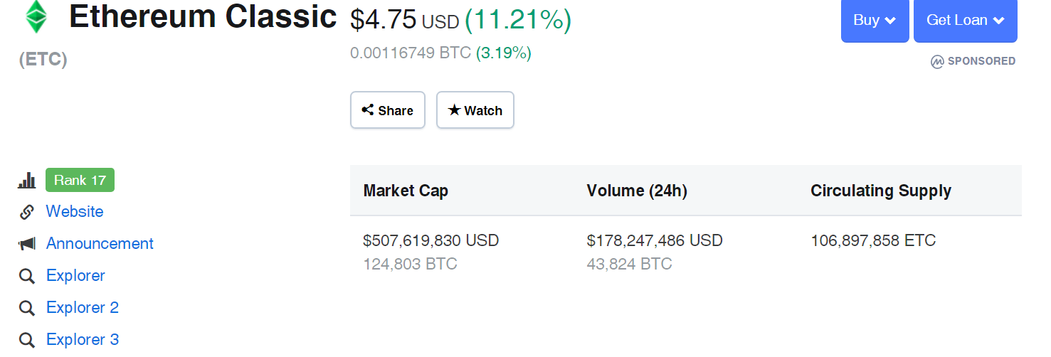 Ethereum Classic (ETC)lallalalalalalal (45)in #crypto • 7 years ago Ethereum Classic (ETC)=$4.75 USD #etc #kryptonia